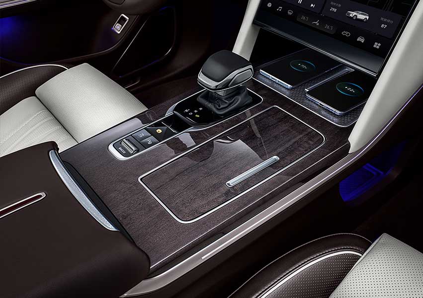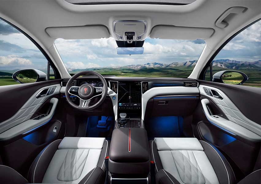 التصميم الداخلي أنيق وراقي، معزز بمواد مختارة بعناية وحرفية رائعة، مما يخلق تجربة قيادة فاخرة تجذب جميع الحواس الخمس – اللمس والبصر والسمع والشم والتذوق.